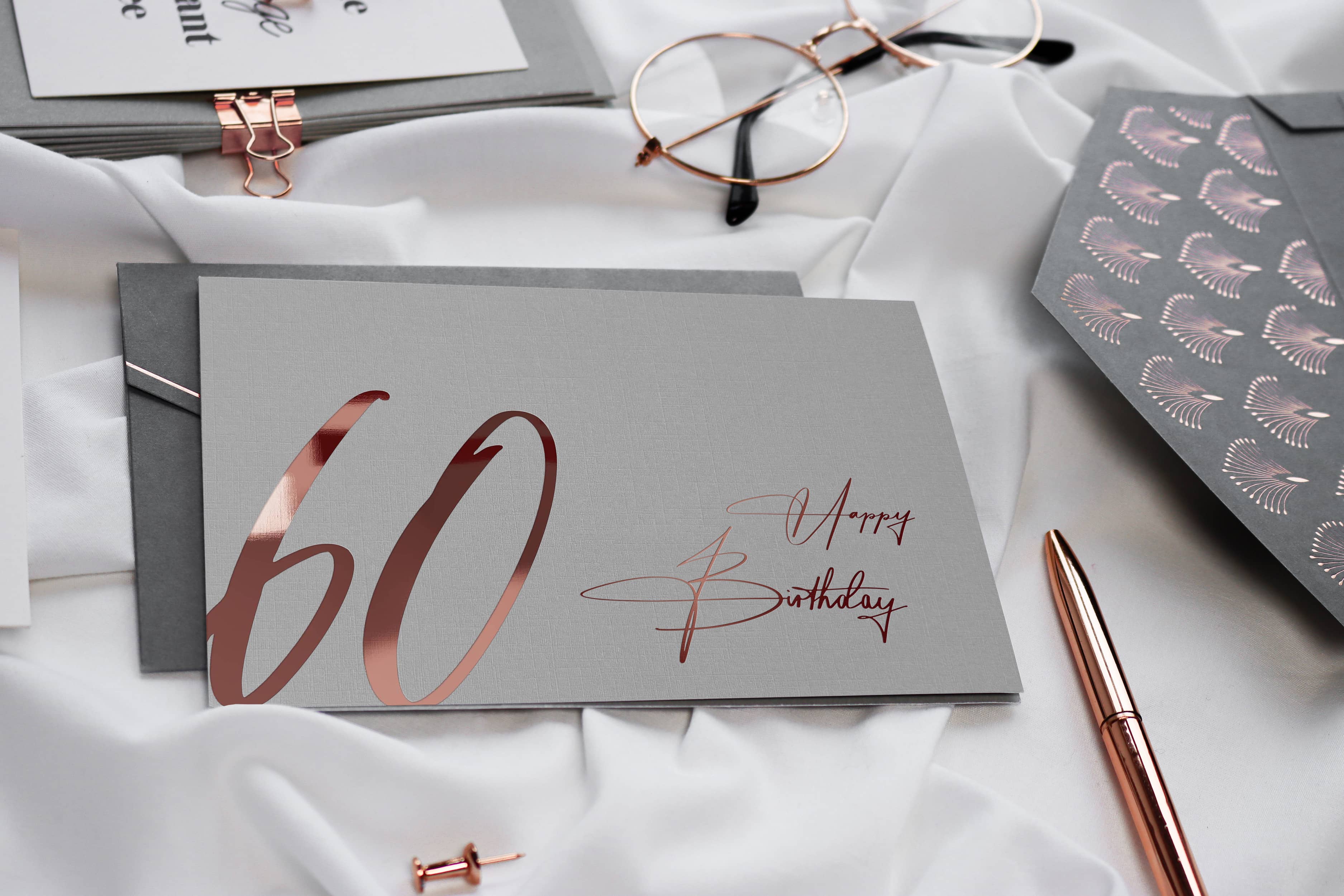 Lorsque vous atteignez 60 ans, vous avez déjà accompli beaucoup de choses dans votre vie. La carrière est presque terminée, les enfants sont grands et il y a peut-être déjà les premiers petits-enfants à câliner. Quiconque est si riche en expériences de vie précieuses peut célébrer cet événement important en grand. En plus des cadeaux, une salutation personnelle sous la forme d'une belle carte de vœux ne devrait pas manquer. Découvrez des cartes d'anniversaire chics pour les 60 ans dans notre boutique en ligne JoliCoon et faites plaisir à vos proches lors de leur journée spéciale.