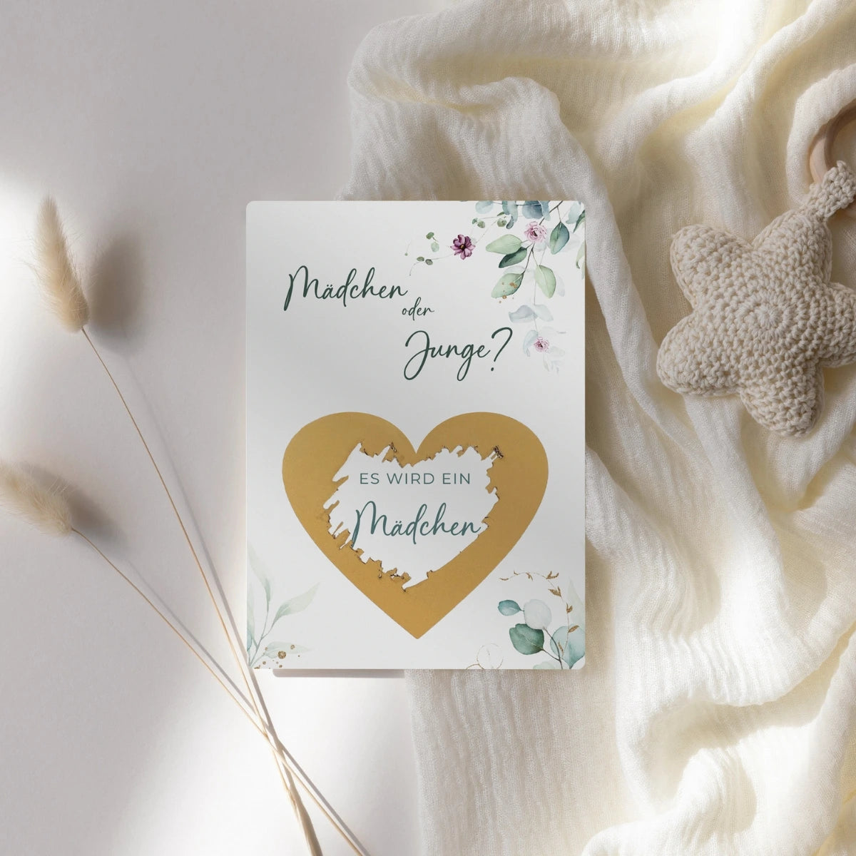 Nous comprenons que chaque annonce de genre est unique, tout comme la joie qu'elle apporte. Avec une carte, vous pouvez non seulement annoncer le sexe du bébé, mais aussi sentir que ce moment est un grand cadeau. Explorez notre sélection de faire-part de genre et trouvez le moyen idéal pour partager joie et anticipation. Avec nos cartes à gratter fille ou garçon, nous vous proposons un moyen simple de partager la joie et de révéler le sexe de bébé. En ce moment excitant, nous sommes là pour nous assurer que votre moment de révélation du sexe de votre bébé soit une explosion. Partagez l'anticipation, relâchez la tension et annoncez le sexe du bébé. Votre geste devient le souvenir d'un moment inoubliable qui répand l'amour et la joie au cœur de la famille.