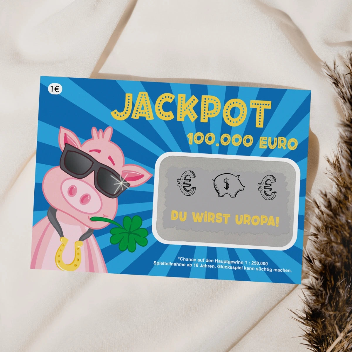 Du möchtest deine Schwangerschaft auf die witzigste Art und Weise verkünden? Dann ist unser Jackpot-Lotto-Rubbellos die perfekte Wahl! Stell dir vor, du überreichst deinem Partner oder deiner Familie ein Rubbellos – und beim Freirubbeln erscheint die Nachricht: ,Du wirst Papa!’ oder ,Wir bekommen ein Baby!’. So machst du die Schwangerschaftsverkündung nicht nur spannend, sondern auch richtig humorvoll. Das Rubbellos im Jackpot-Design sorgt für echte Glücksmomente und garantiert auch für großes Staunen und viel Gelächter. Die Lotto-Rubbellose sind mit humorvollen Symbolen versehen, die perfekt zur lustigen Verkündung eines Babys passen. Wenn du ein Lächeln auf das Gesicht deiner Liebsten zaubern möchtest, ist das eine super Möglichkeit, die frohe Nachricht auf eine ganz besondere Weise zu überbringen. Ganz egal, ob für die Familie, den Partner oder auch als Überraschung für Freunde – ein Rubbellos ist immer eine kreative und lustige Idee, die unvergesslich bleibt.