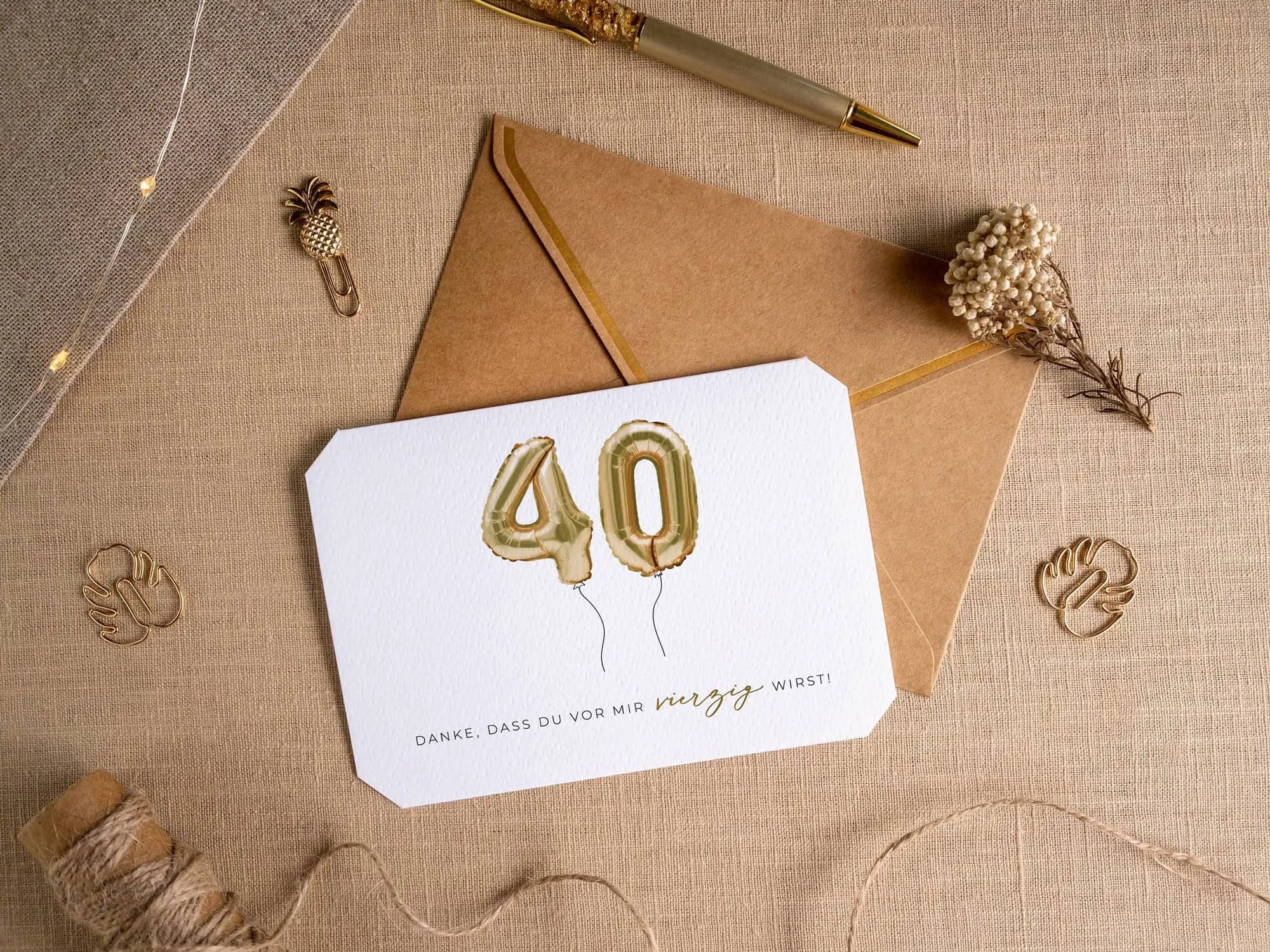 Une nouvelle décennie de vie est une grande fête. Alors qu'une fête se termine, que des ballons éclatent et que le gâteau est plâtré, une carte d'anniversaire durera pour toujours. Chez JoliCoon, nous nous sommes spécialisés dans les cartes de haute qualité qui sont non seulement belles, mais aussi d'une qualité particulièrement élevée. Que ce soit pour les hommes ou les femmes, nos designs d'anniversaire ont été créés à la main avec amour et offrent des points forts visuels avec de beaux détails. Vous cherchez quelqu'un avec un sens de l'humour? Alors notre carte pliante "Merci d'avoir eu 30 ans avant moi" est le cadeau parfait. La carte met de beaux accents en or et offre suffisamment d'espace pour la concevoir vous-même. Notre carte pliante 50 Happy Birthday to You est simple et élégante. Nous portons la carte pour presque tous les anniversaires marquants et elle est accompagnée d'une élégante enveloppe avec un sceau. Vous pouvez également choisir une étiquette de bouteille appropriée qui fera d'une bouteille de vin ou de vin mousseux un cadeau très spécial.