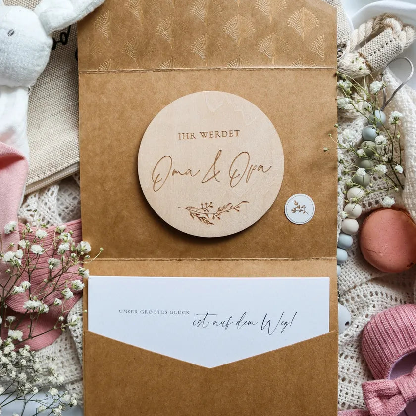 Annoncer une grossesse est un moment magique qui mérite une attention particulière. Nos cartes en bois uniques vous invitent à partager la bonne nouvelle de manière naturelle et créative. Avec nos cartes en bois faites à la main, vous pouvez non seulement partager l'anticipation, mais aussi souligner le lien avec la nature et le caractère unique de ce moment.