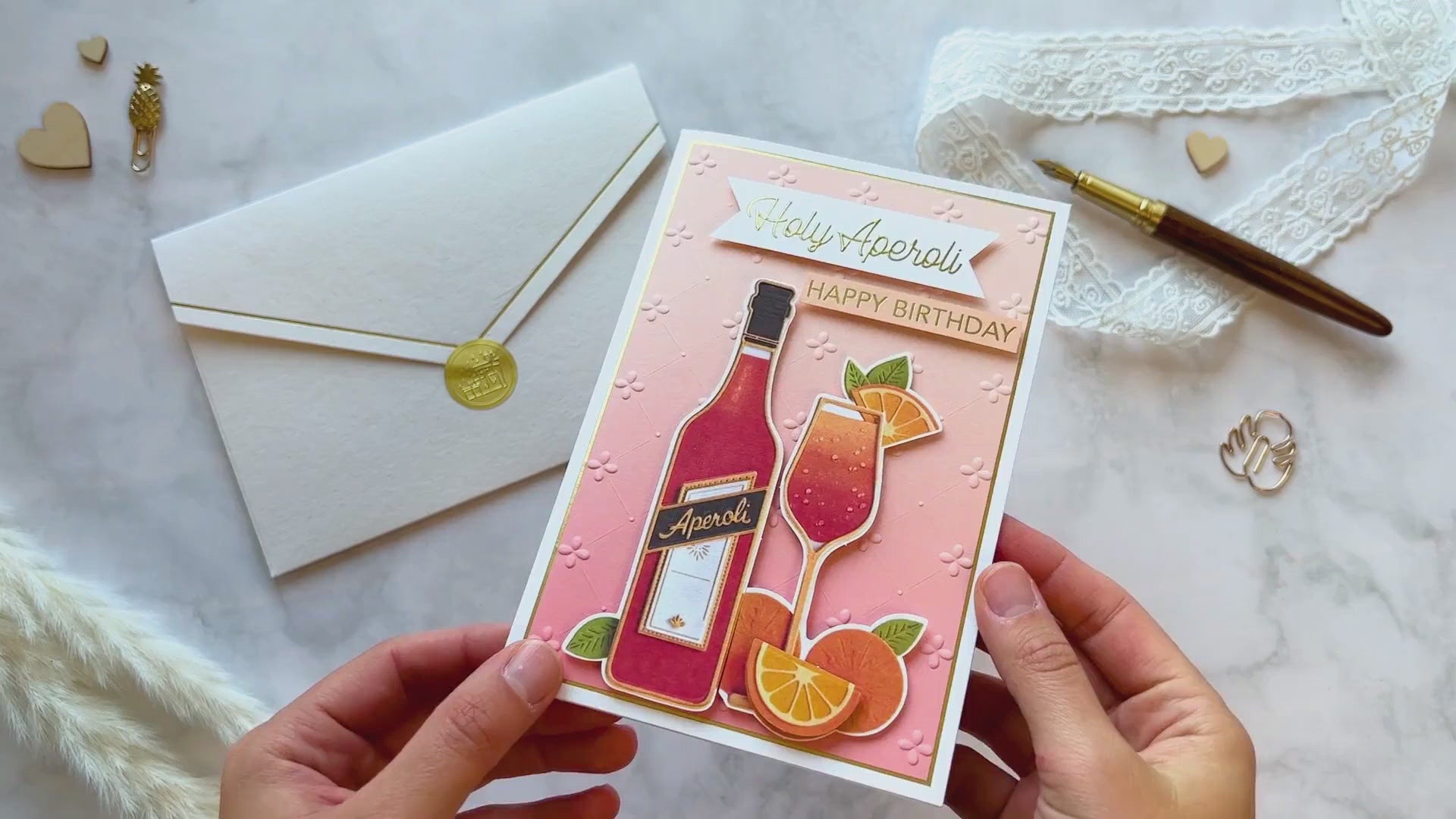 JoliCoon Geburtstagskarte Signature Holy Aperoli in 3D-Layer-Optik mit Aperolflasche, Glas und Orangenmotiv – edle Karte zum Geburtstag mit Goldveredelung