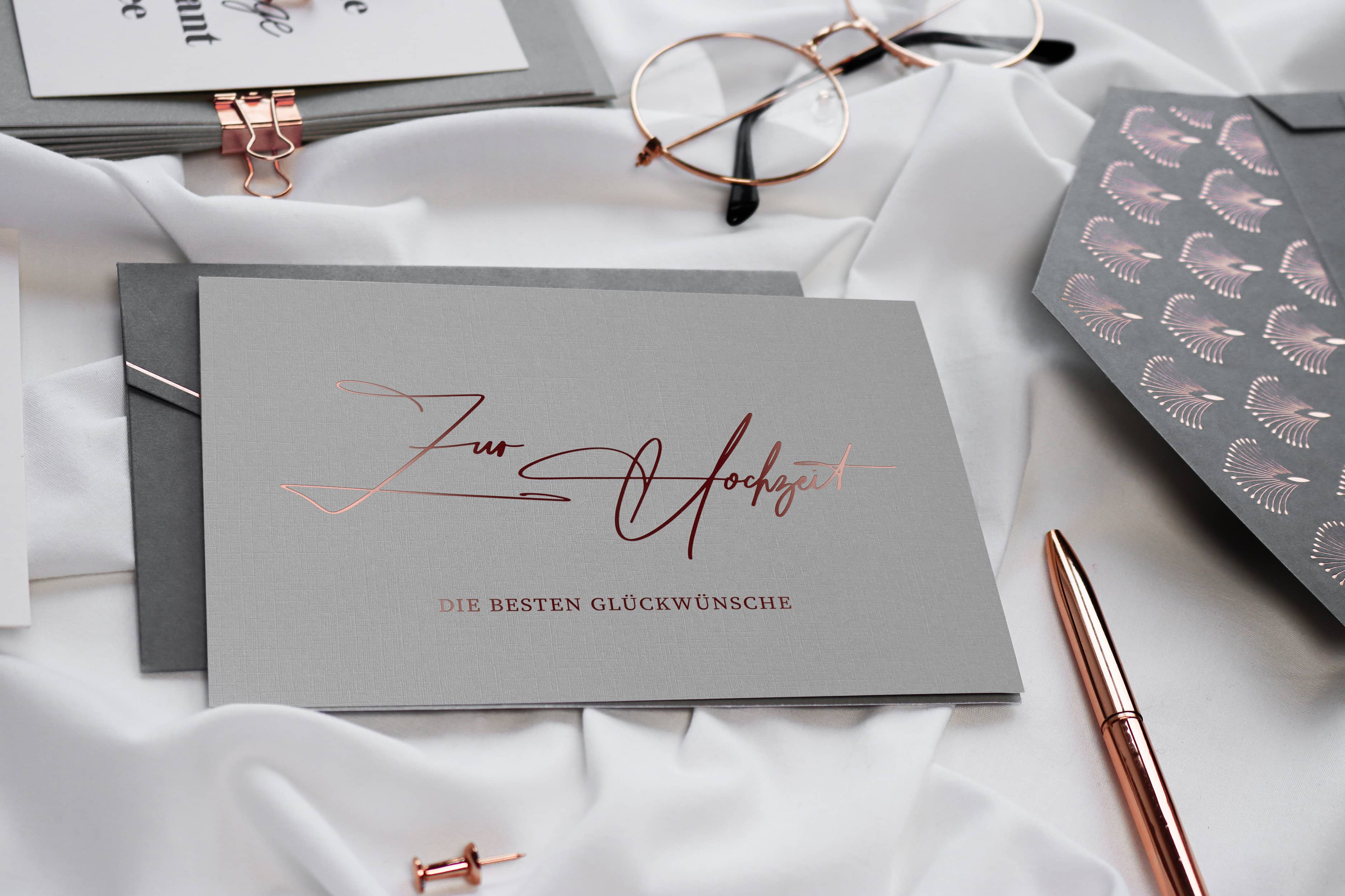 Recevoir une magnifique carte ennoblie avec un vernis UV et une enveloppe premium pour répondre aux exigences les plus élevées.